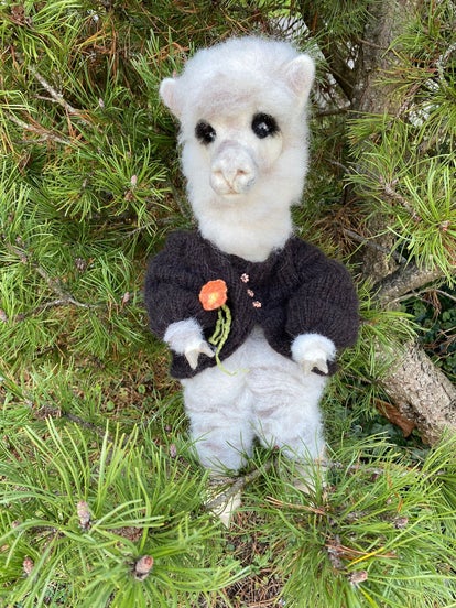 Ich bin ein Alpaka und heisse BAHATI, das bedeutet Glück. Ich bin aus Alpakawolle, von Hand gefilzt, also ein Unikat.