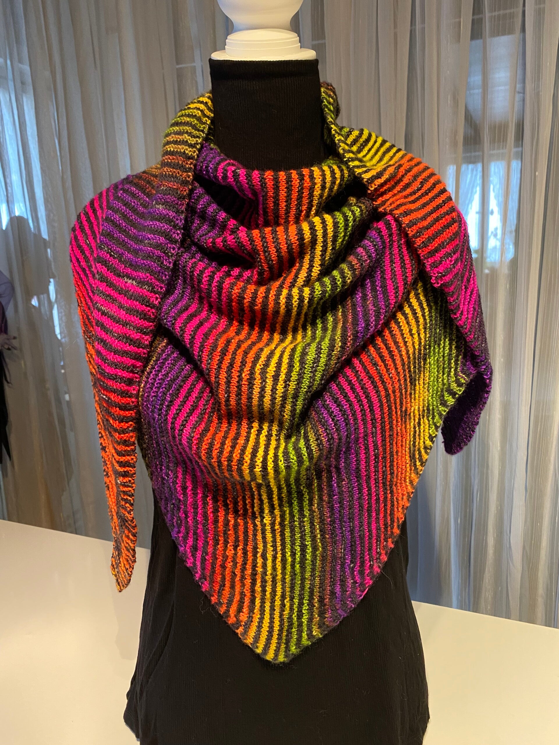 Gestrickter Dreieckschal Neon gestreift