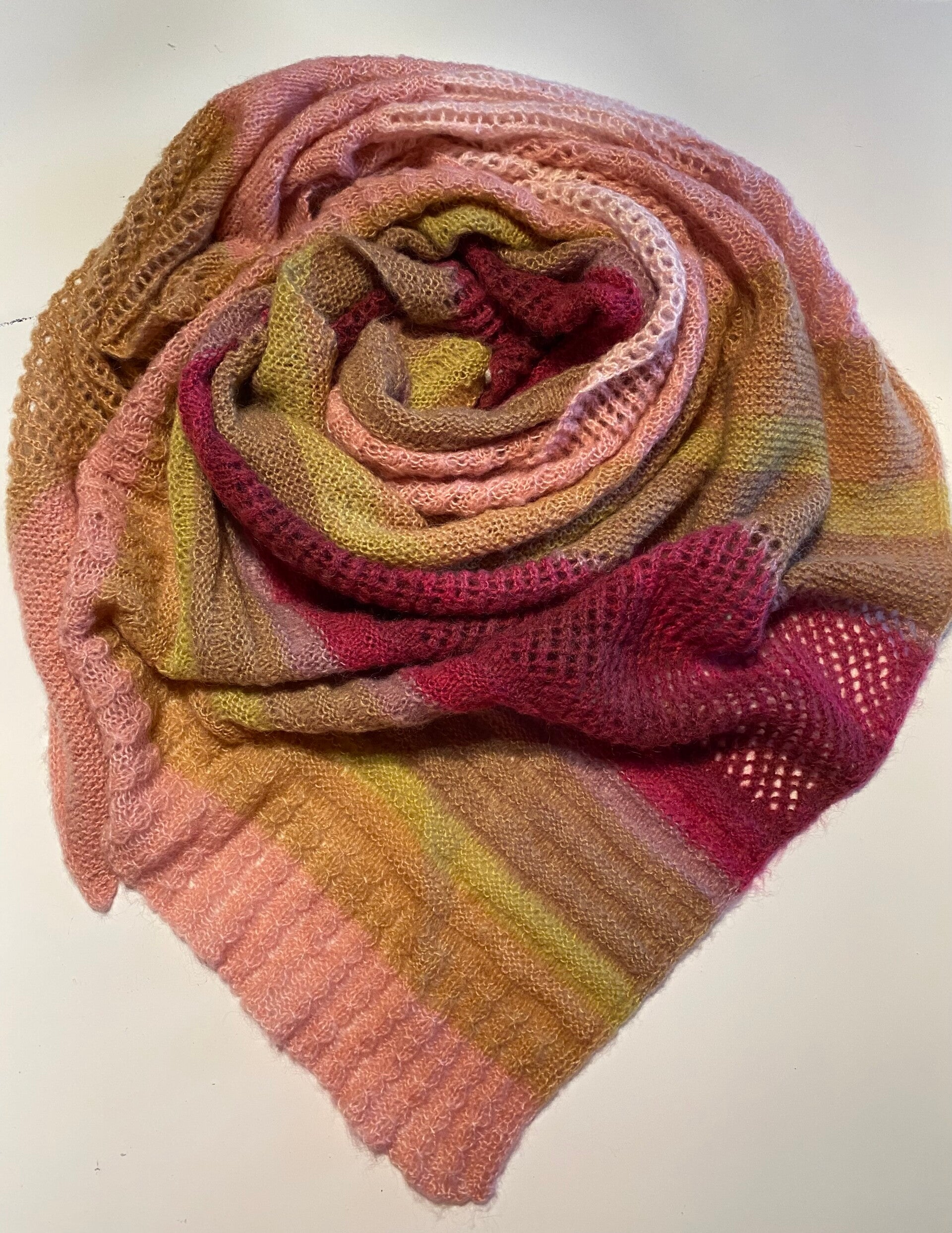 Gestricktes Dreiecktuch beige,rosa & altrosa