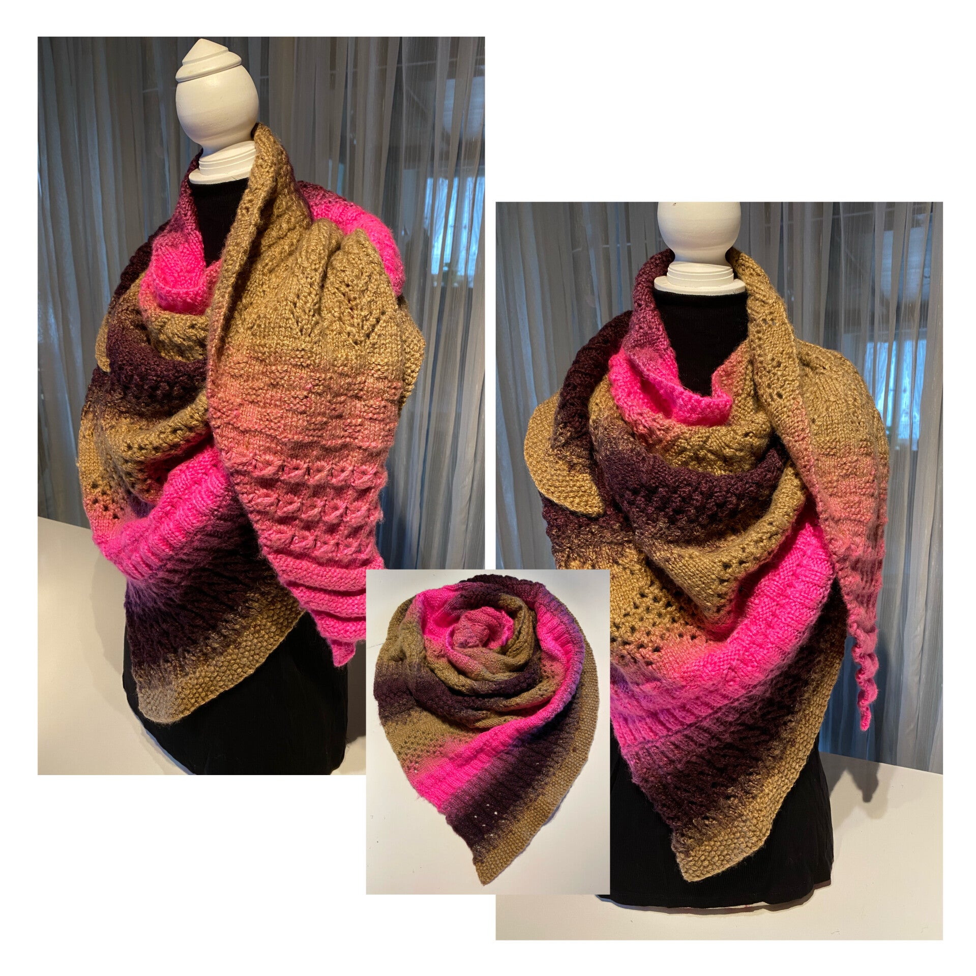 Gestricktes Dreiecktuch asymmetrisch pink,beige & lila