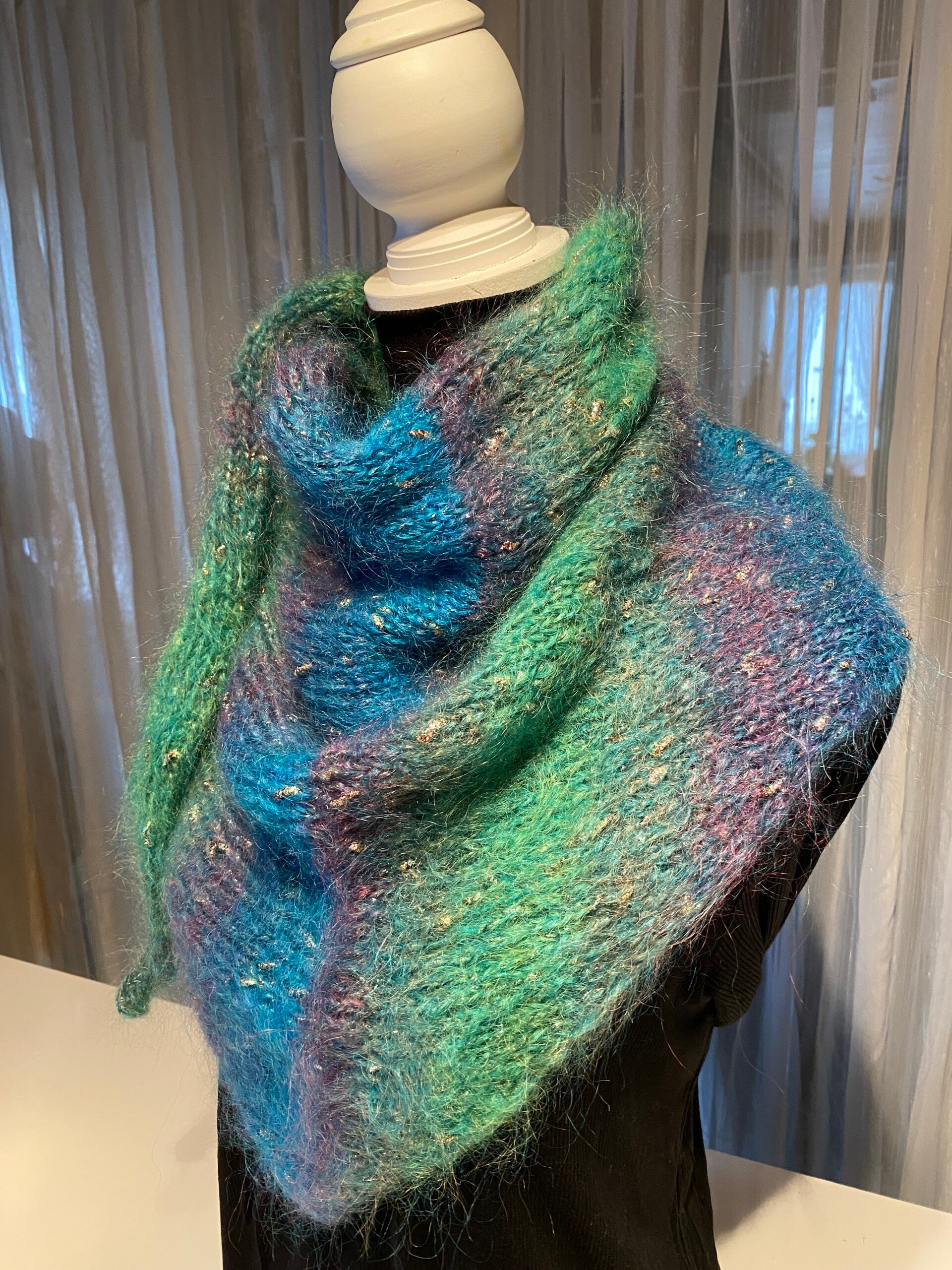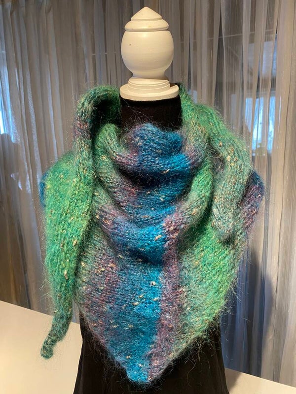 Gestricktes Dreiecktuch grün & blau